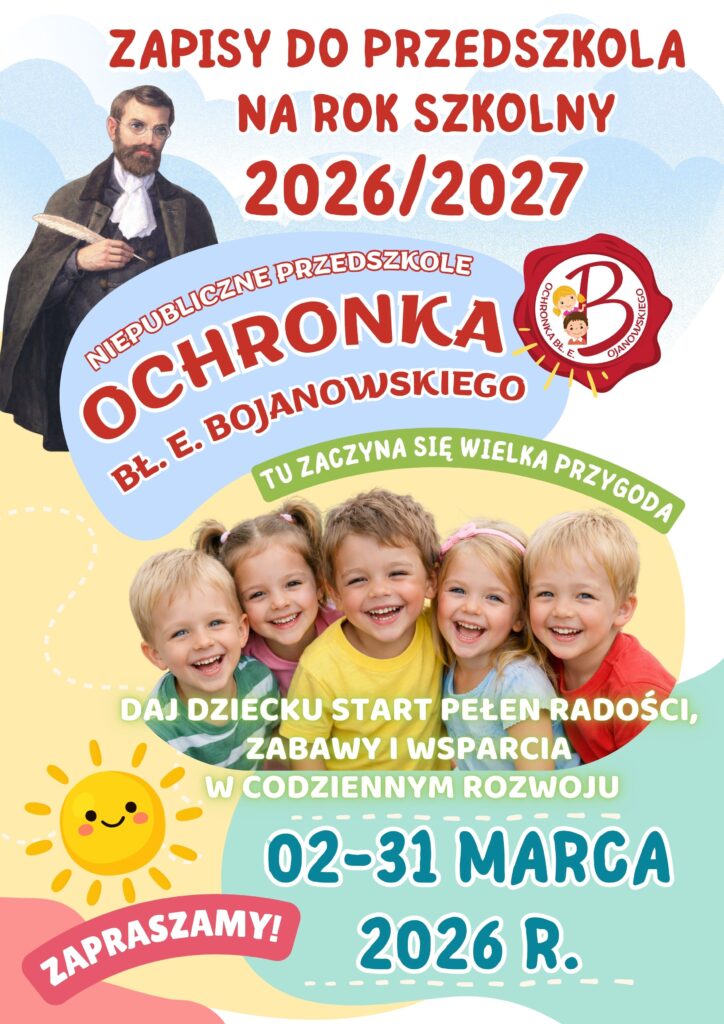 Ochronka Bł. Edmunda Bojanowskiego w Sanoku ogłasza nabór dzieci do grup przedszkolnych na rok szkolny 2026/2027.